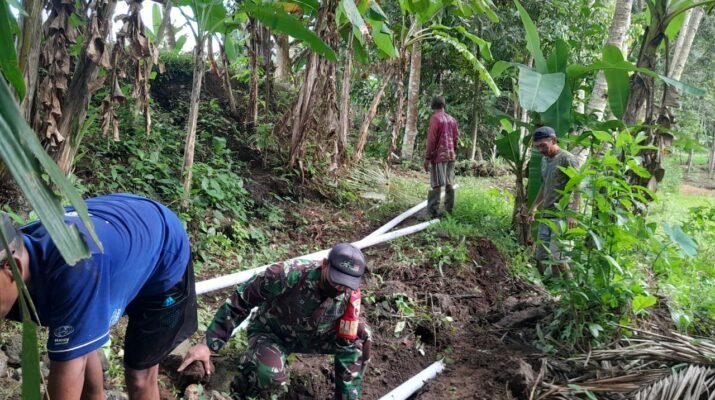 Babinsa Koramil 0825/20 Songgon Bersama Poktani Pacul Gowang Laksanakan Karya Bhakti Irigasi Pipanisasi Pertanian Hortikultura Dalam Rangka Mendukung Program Ketahanan Pangan