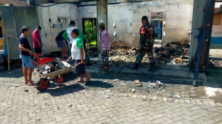 Pembersihan ini dilakukan untuk memastikan lokasi kejadian aman dan bersih dari sisa-sisa kebakaran. Babinsa Kaligondo bersama warga bergotong royong membersihkan puing-puing bangunan yang terbakar dan membantu membersihkan sisa-sisa barang yang terbakar.