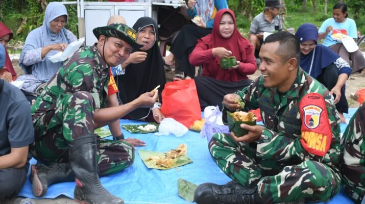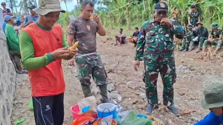Banyuwangi – Kehangatan kebersamaan antara Satgas TNI Manunggal Membangun Desa (TMMD) ke-125 Ta. 2025 Kodim 0825/Banyuwangi dengan masyarakat terlihat jelas di lokasi kegiatan. Di
