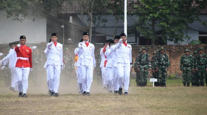 Banyuwangi – Satgas TNI Manunggal Membangun Desa (TMMD) ke-125 Kodim 0825/Banyuwangi mengikuti upacara peringatan Hari Ulang Tahun ke-80 Kemerdekaan Republik Indonesia yang digelar di