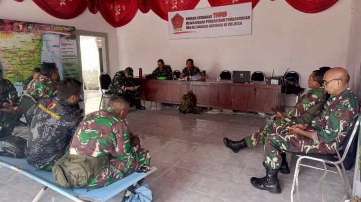 Banyuwangi – Satgas TNI Manunggal Membangun Desa (TMMD) Kodim 0825/Banyuwangi melaksanakan rapat evaluasi sekaligus mempersiapkan pelaksanaan penutupan TMMD. Kegiatan ini berlangsung di Makodim 0825/Banyuwangi