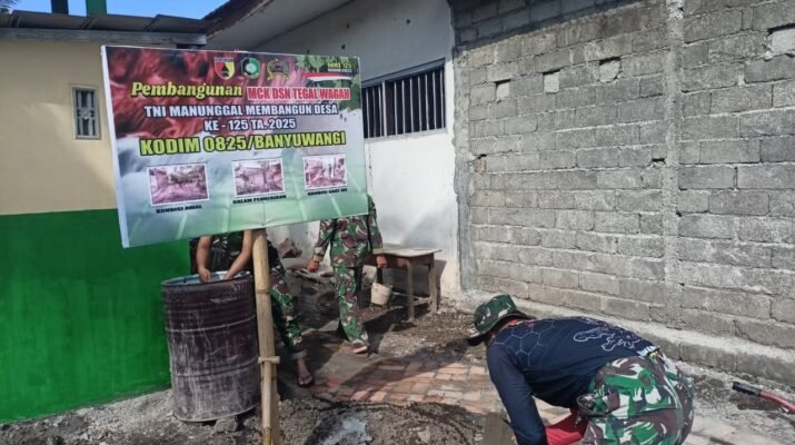 Banyuwangi – Progres pembangunan fasilitas Mandi, Cuci, Kakus (MCK) dalam program TNI Manunggal Membangun Desa (TMMD) ke-125 di Dusun Tegalwagah, Desa Siliragung, terus menunjukkan