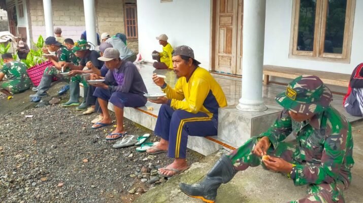Banyuwangi – Suasana kebersamaan terlihat hangat dalam program TNI Manunggal Membangun Desa (TMMD) ke-125 yang dilaksanakan di Desa Seneporejo, Kecamatan Siliragung, Banyuwangi. Tidak hanya