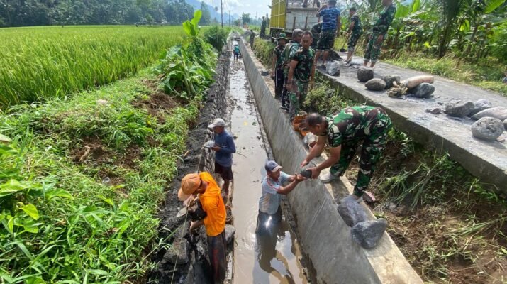 Program TNI Manunggal Membangun Desa (TMMD) ke-126 Kodim 0818/Malang-Batu terus menunjukkan progres signifikan. Salah satu kegiatan fisik yang menjadi prioritas adalah normalisasi saluran irigasi di Dusun Lebaksari, Desa Lebakharjo,
