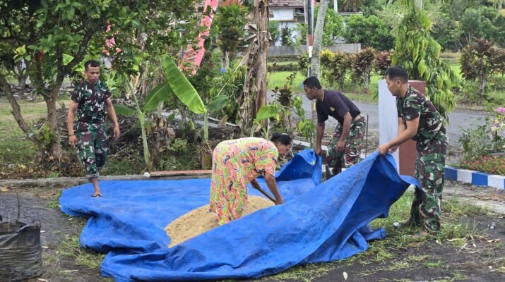 Di sela-sela waktu istirahat pengerjaan proyek, anggota Satgas TMMD menunjukkan aksi gotong royong yang patut diacungi jempol dengan membantu warga Dusun Kerajan 1B, Desa Lebakharjo