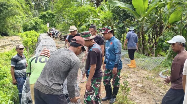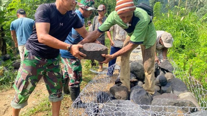 Satgas TMMD 126 Lebakharjo Kejar Pemasangan Kawat Bronjong di Tengah Tingginya Curah Hujan