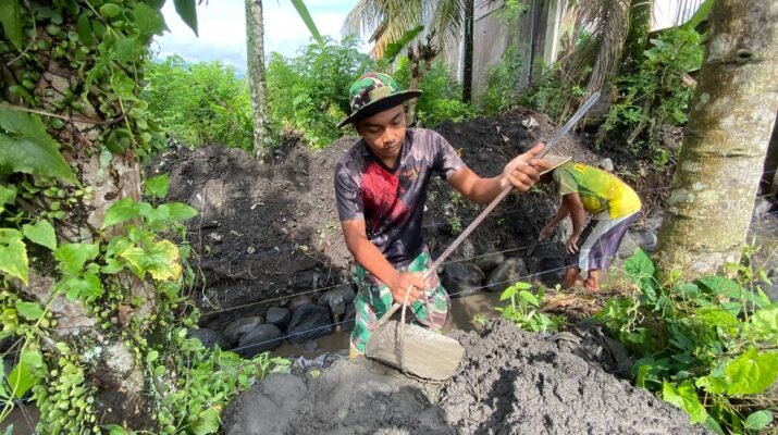 Ampelgading – Semangat gotong royong terasa mengalir di tunjukkan puluhan warga Dusun Krajan 1 B dan anggota Satgas TMMD 126 Lebakharjo sejak pagi tadi.(10/2025).