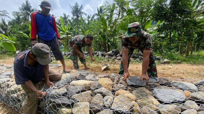 Pemasangan Bronjong Satgas TMMD 126 Perkuat Bantaran Sungai Lebakharjo Cegah Banjir